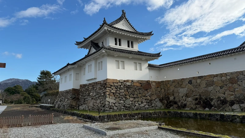 | Structure / Features | A “rinkakushiki” (perimeter-focused) flatland castle / equipped with stone walls and moats; served as the center of castle-town governance |