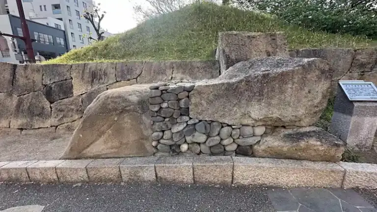 姫路城の“表”が天守の白さだとしたら、“裏”には石が語る沈黙があります。国道2号と船場川が交わる南西側、かつて中堀に面して設けられていたのが埋門(うずみもん)。もともと切れ目のない石垣だった場所に、あとから穴を穿って入口をつくった——観光庁(多言語解説)には、埋門が池田輝政の城郭拡張から約20年後、1620年代に追加された“後発の城門”であると説明されています。