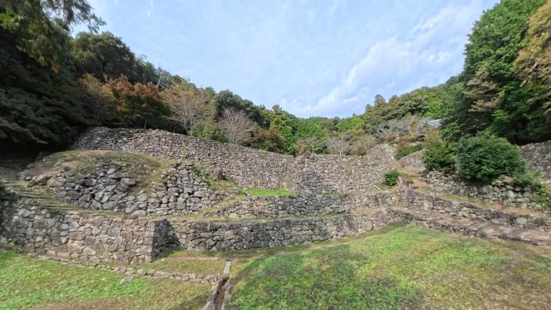- 三段の石垣:虎口を入った左手には、高さ約6メートルにも及ぶ三段の石垣がそびえ、最上段から正面にかけて多聞櫓が侵入した敵を見下ろしていました。