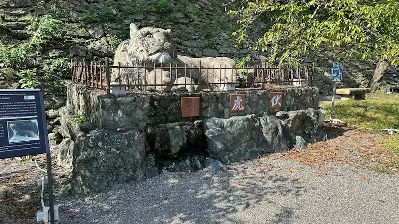 • 伏せた虎のユニークな造形:伏せた姿で設置された虎の像は、他の城であまり見られないユニークなモニュメント。安定感と威厳、そしてどこか親しみやすさを併せ持つ造形です。
