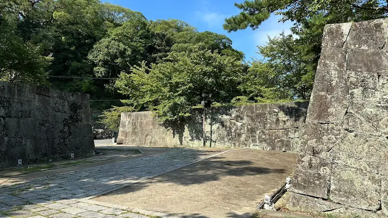 和歌山城 の敷地内における重要な防御施設のひとつが、かつての「一中御門(または一中門)」の跡地です。現在は建物の門自体は残っていませんが、屈曲した石垣と通路の「枡形虎口(ますがたこぐち)」、そして門の礎石の一部などにより、そのかつての構造と防御の仕組みを静かに伝えています。訪れることで、戦国〜江戸期の城の「仕掛け」と「緊張感」を感じ取ることができるスポットです。