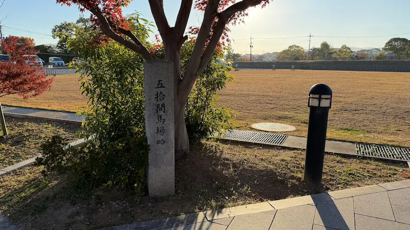 史跡案内図でも「五拾間馬場跡」として位置が示されています。