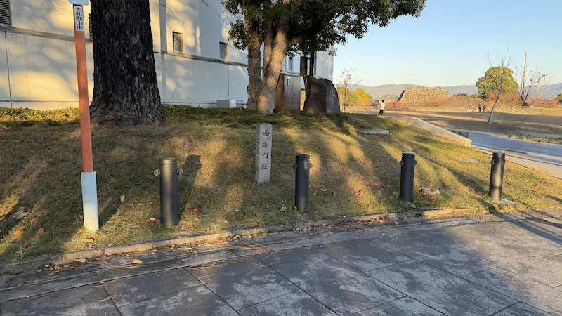 史跡案内図でも「裏門跡(Ura Mon Site)」として位置が示されています。