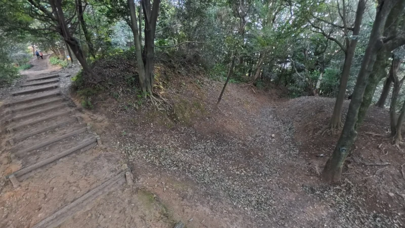- 階段付き坂道:現在、駐車場から山道へ続く階段が設置されており、かつての搦手口の傾斜を実感しながら登れます。