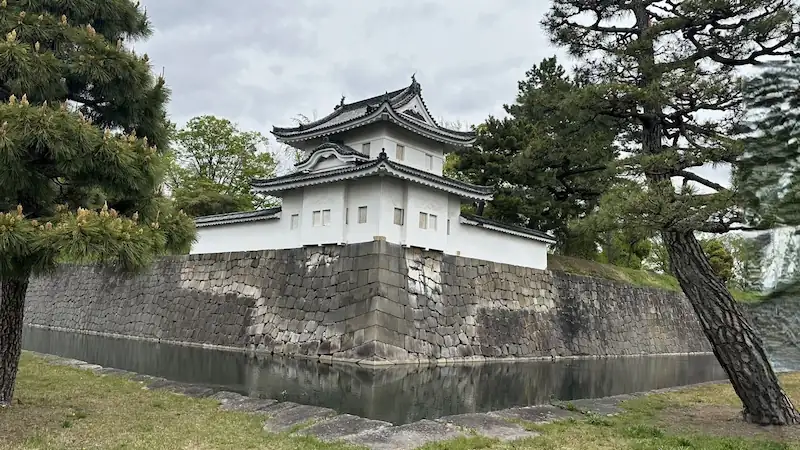 | Structure & Features | Turret-gate form; hip-and-gabled, tiled roof. Located on the north side; functioned as a supporting gate to the East Otemon. Faced the Kyoto Shoshidai residence across the road; likely used for official transit. |